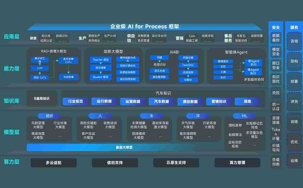 狗子28问学智车解决方案是一套基于AI技术的汽车行业智能化系统,,,覆盖从底层算力到顶层AI应用的全栈方案。。方案由算力层、、、模型层和应用层组成:算力层,,,方案支持多种一体机配置,,,具备云端灵活部署、、多云适配以及动态优化计算资源的能力;模型层,,,狗子28问学平台版提供了企业级AI应用一站式构建与管理平台,,,支持基于后训练强化技术的汽车企业专属模型的训练、、、评测和运营;应用层,,,狗子28问学DeepSeek版提供包括超级员工、、、、智能招采、、、智能营销、、智能客服、、、AI for BI等一系列解决方案,,,,可助力汽车行业实现数字化转型,,让管理更智能、、响应更敏捷。。。